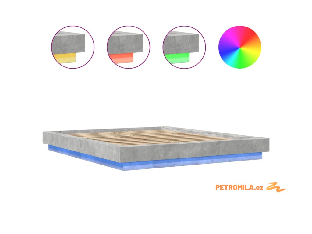 Rám postele s LED osvětlením betonově šedý 150x200 cm kompozit
