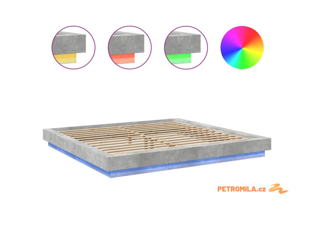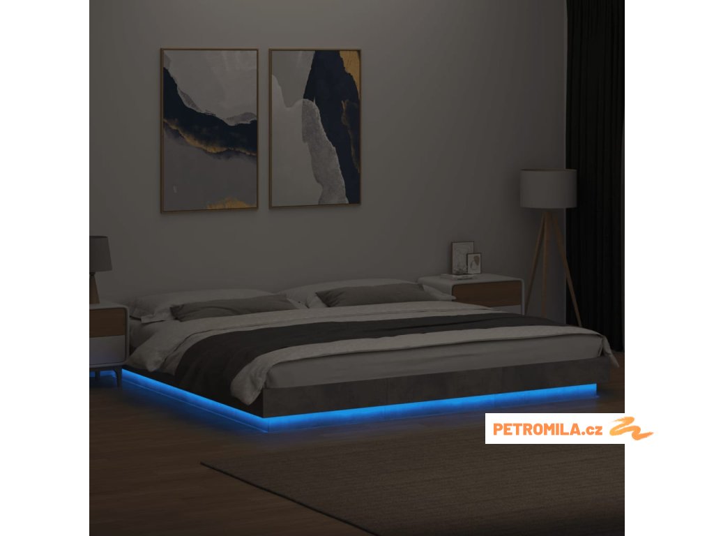 Rám postele s LED osvětlením betonově šedý 180x200 cm kompozit