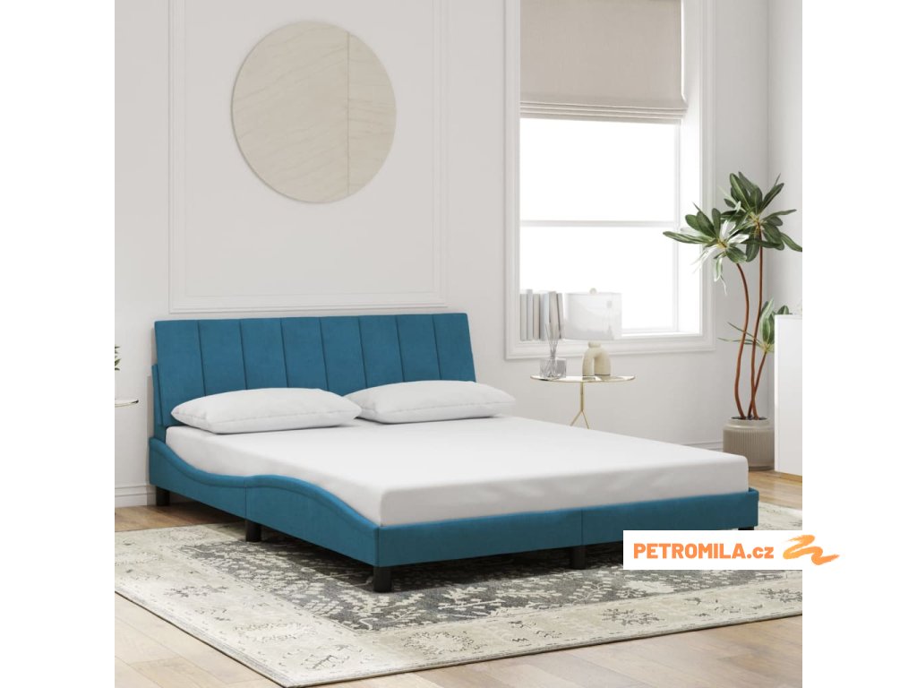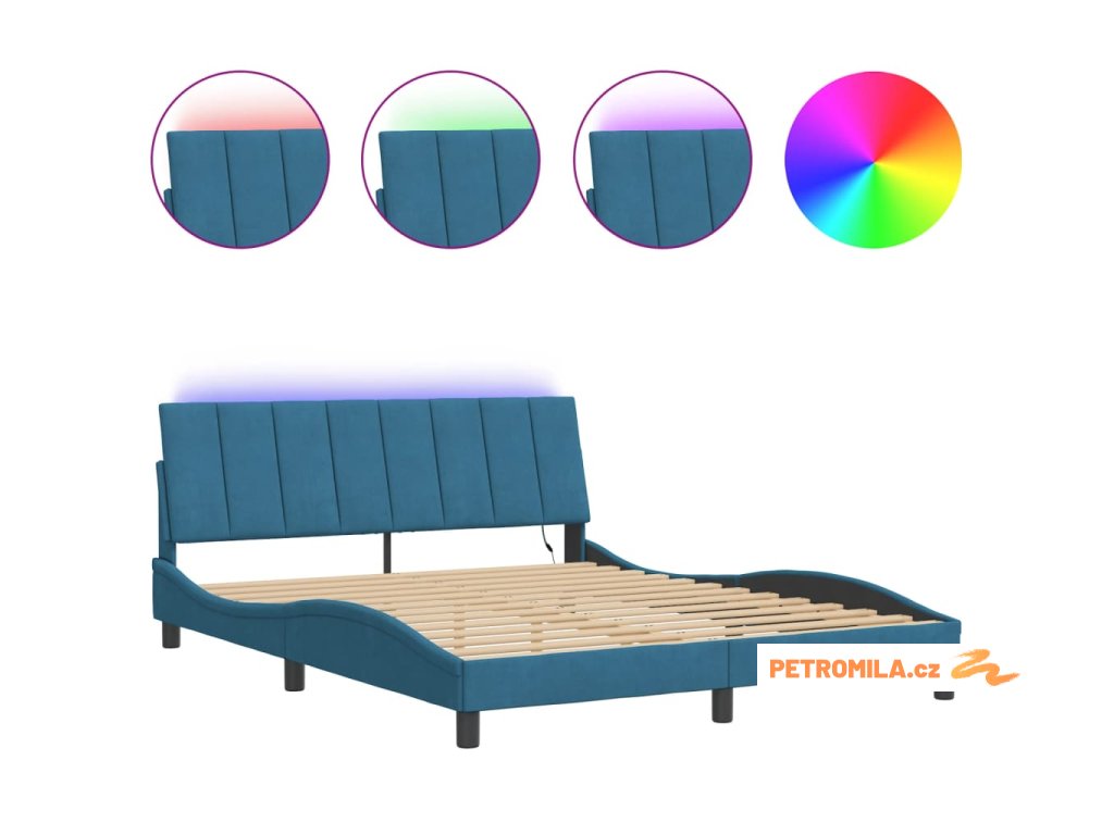 Rám postele s LED osvětlením bez matrace Hanko modrý 160 x 200 cm samet