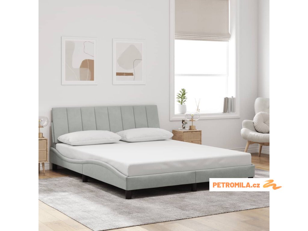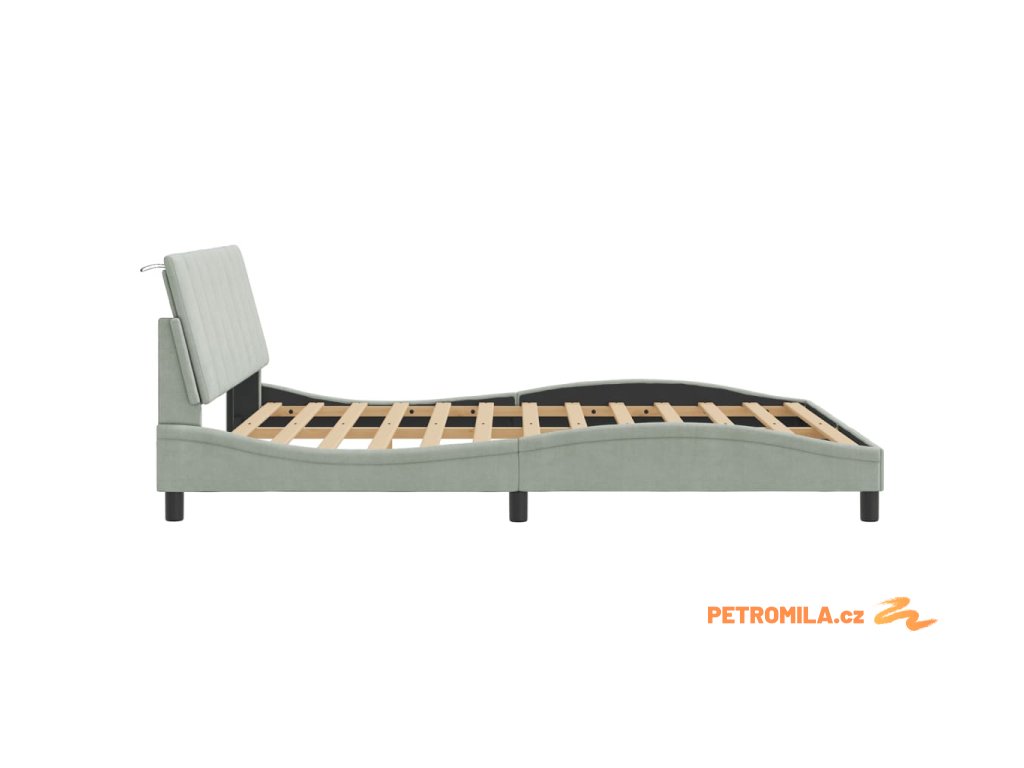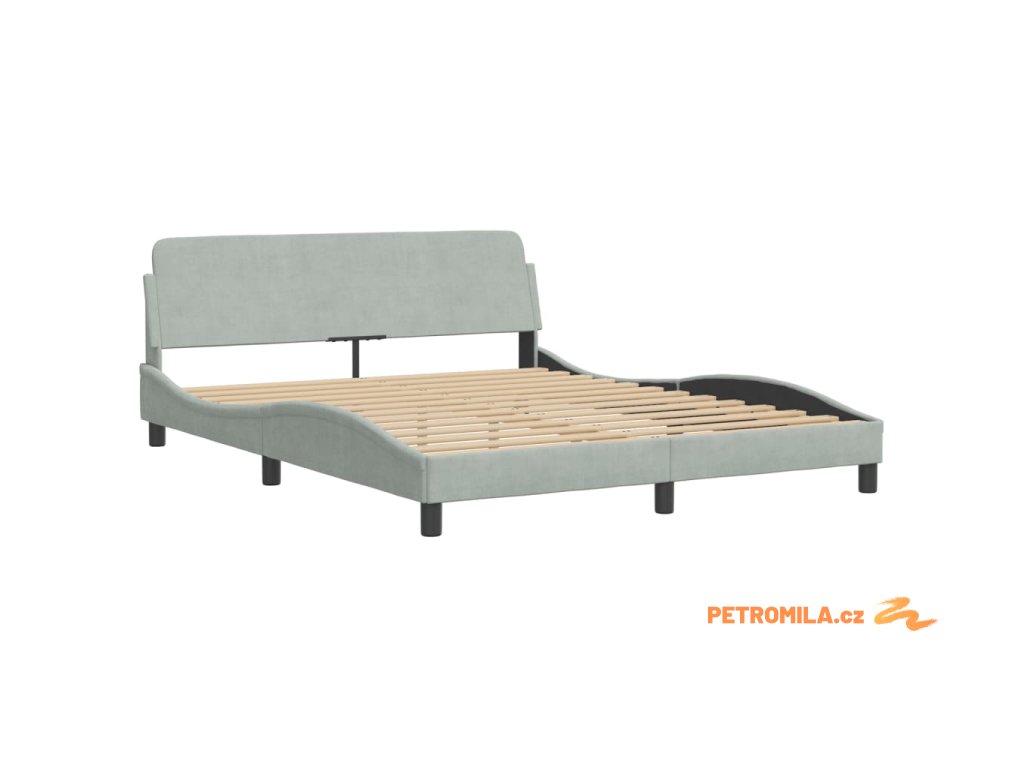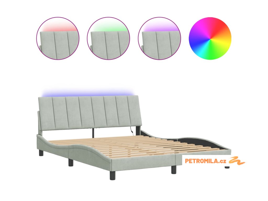 Rám postele s LED osvětlením bez matrace Hanko světle šedý 160 x 200 cm samet