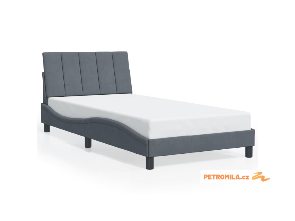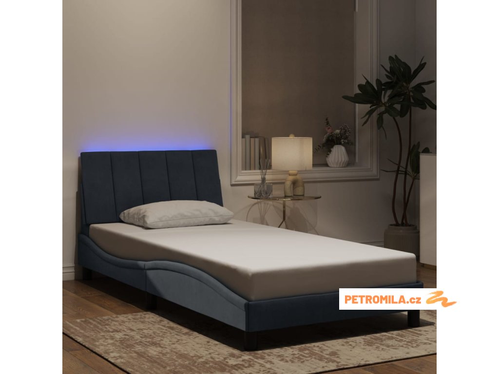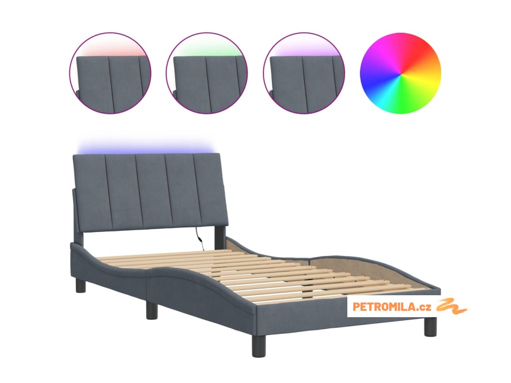 Rám postele s LED osvětlením bez matrace Hanko tmavě šedý 100 x 200 cm samet