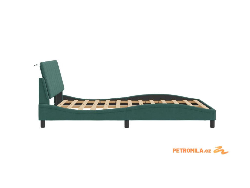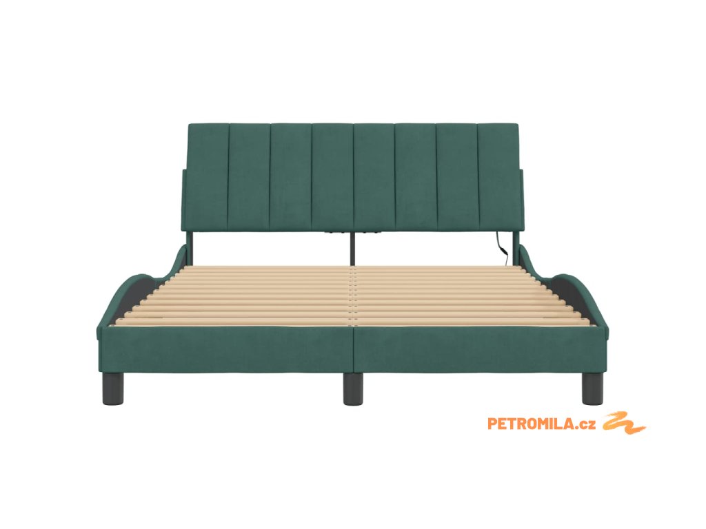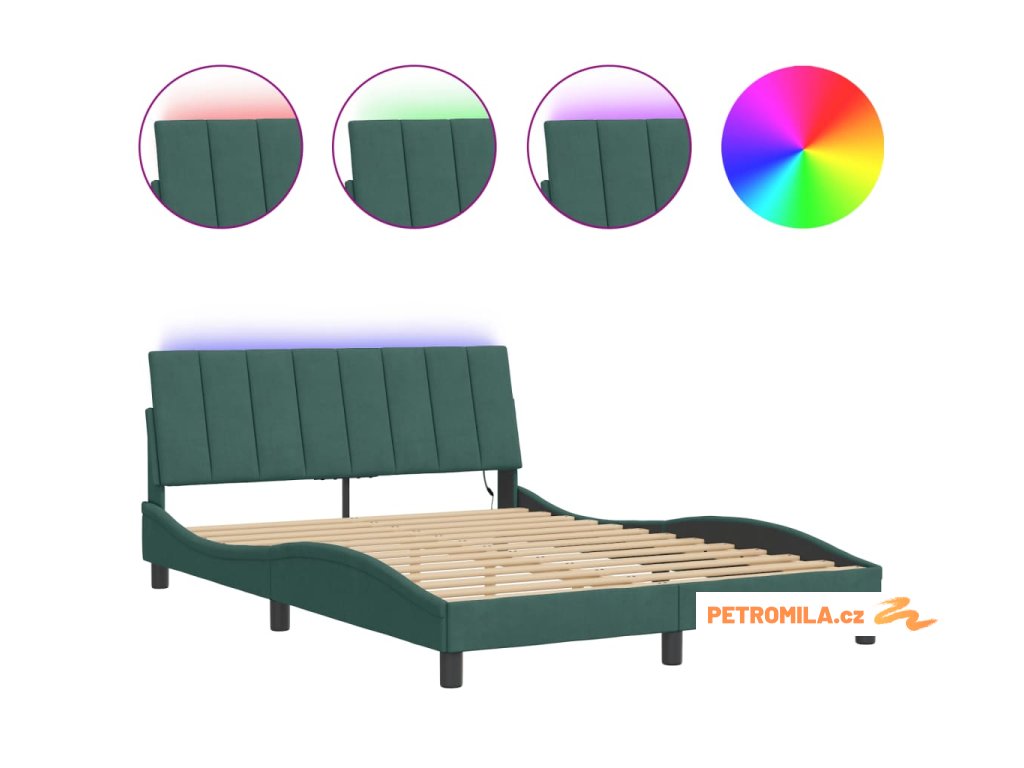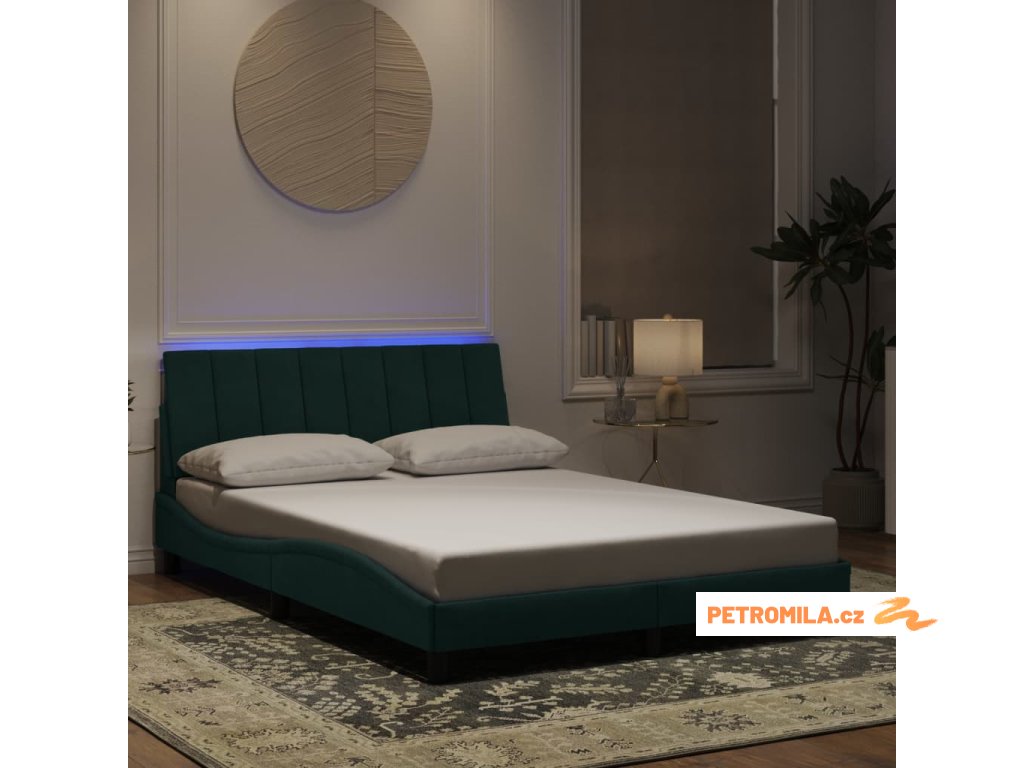 Rám postele s LED osvětlením bez matrace Hanko tmavě zelený 120 x 200 cm samet