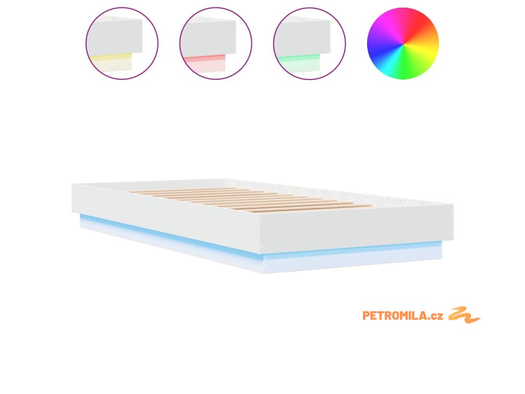 Rám postele s LED osvětlením bílý 100 x 200 cm