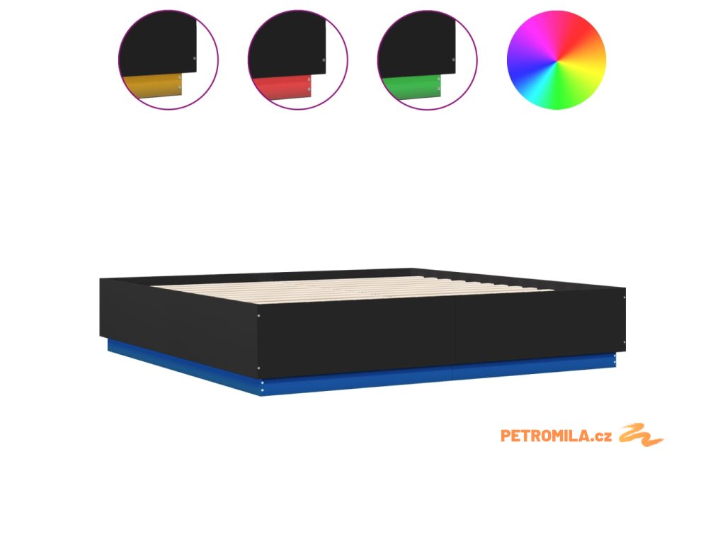 Rám postele s LED osvětlením černý 200x200 cm kompozitní dřevo
