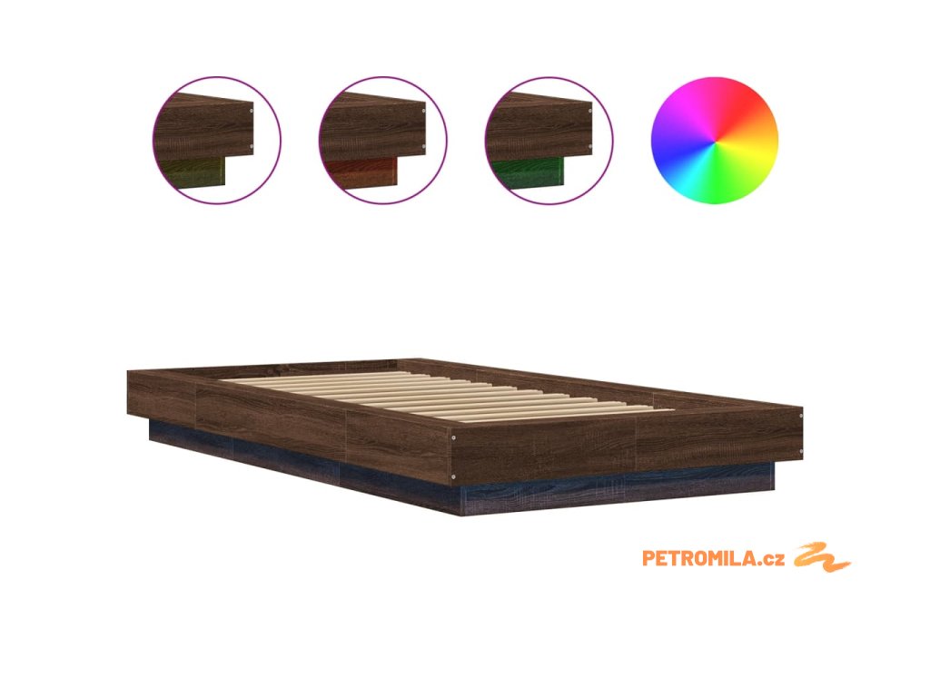 Rám postele s LED osvětlením hnědý dub 100 x 200 cm kompozit