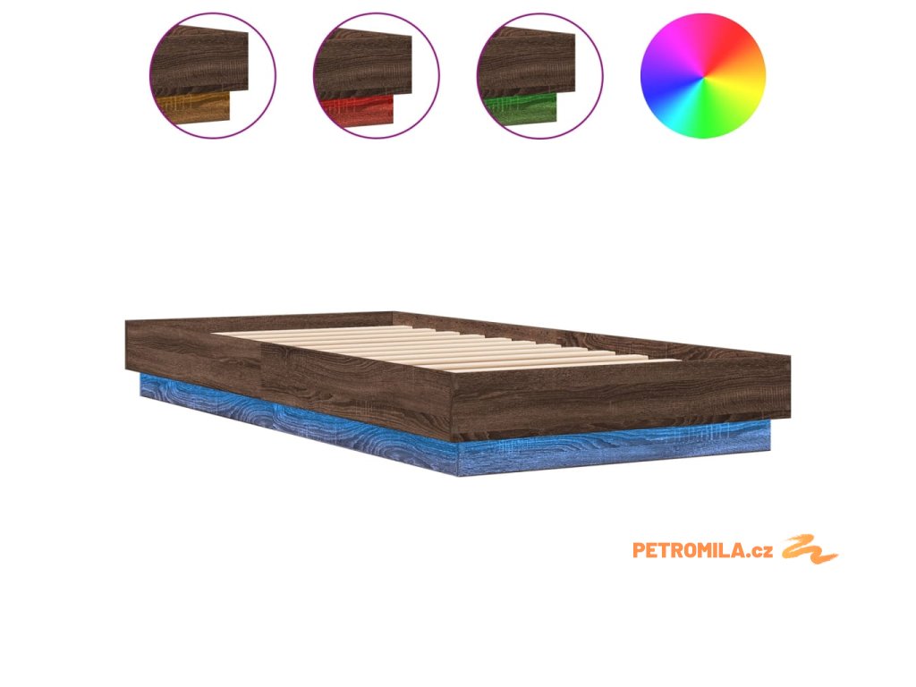 Rám postele s LED osvětlením hnědý dub 100 x 200 cm