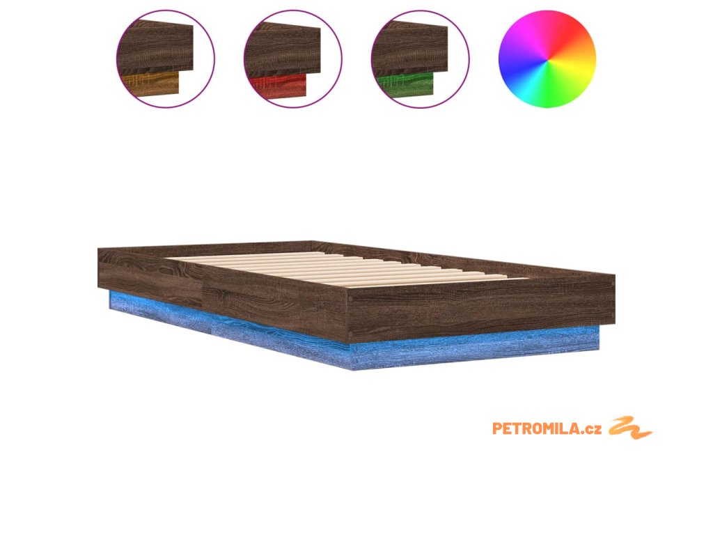 Rám postele s LED osvětlením hnědý dub 75 x 190 cm