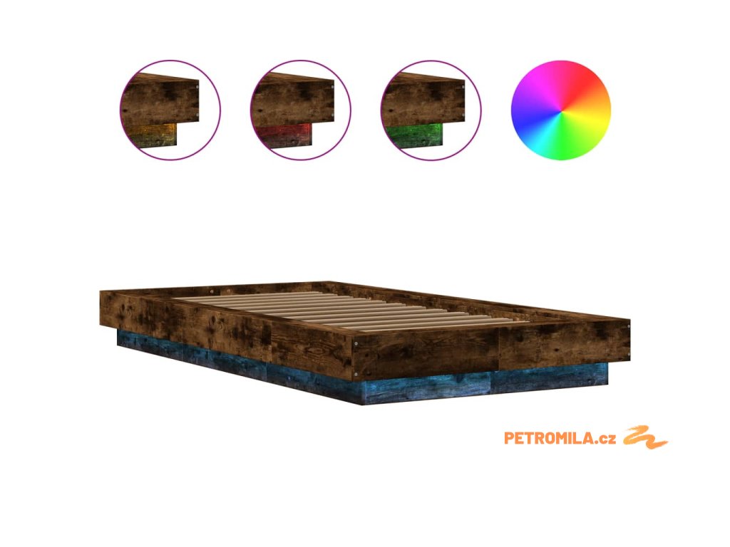 Rám postele s LED osvětlením kouřový dub 75 x 190 cm kompozit
