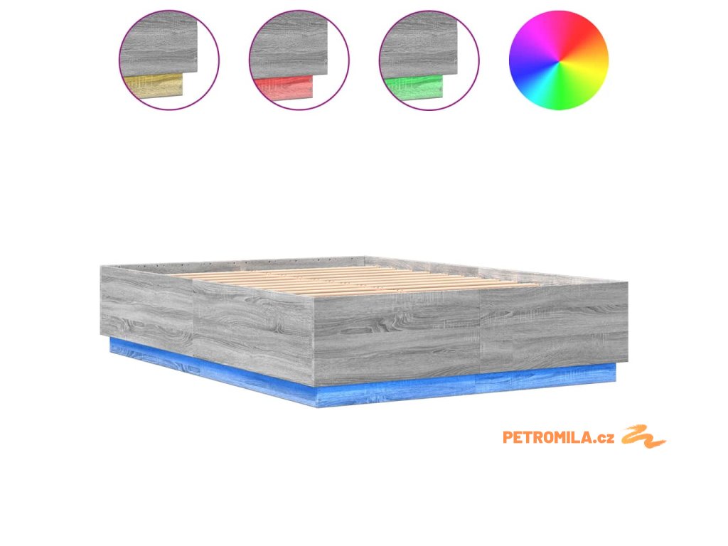 Rám postele s LED osvětlením šedý sonoma 140 x 200 cm kompozit