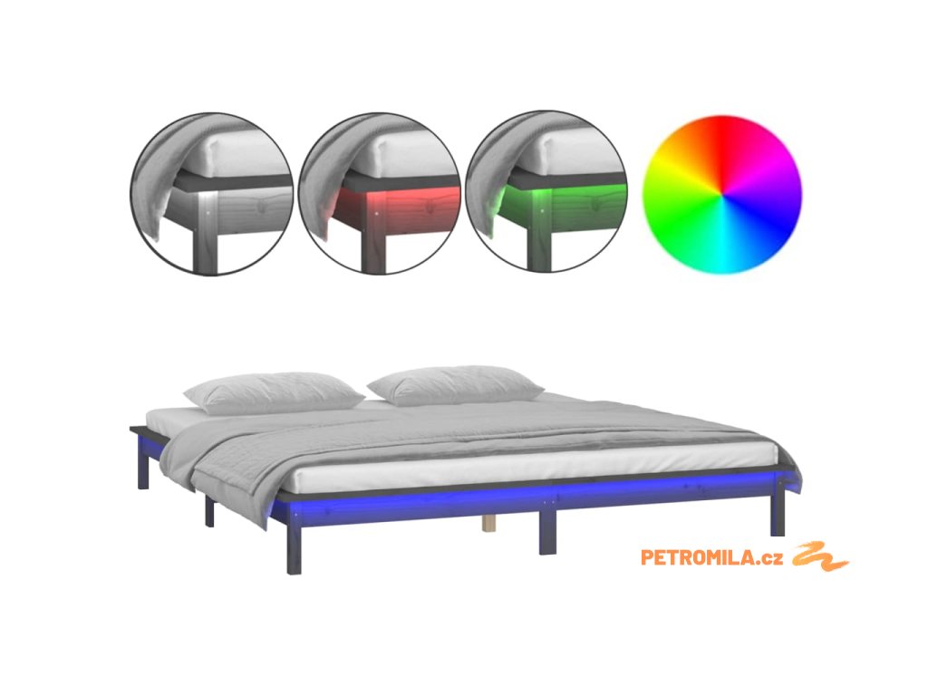 Rám postele s LED šedý 120 x 190 cm Small Double masivní dřevo