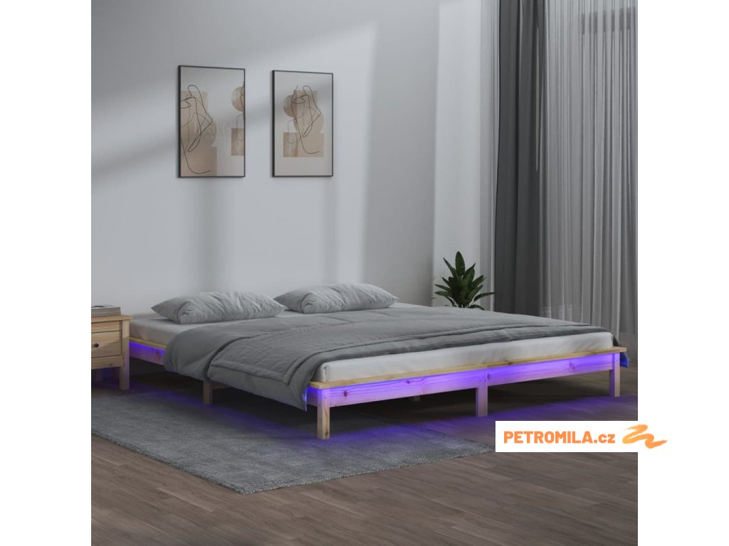 Tento dřevěný rám postele s LED světly má jednoduchý, zato nadčasový design a stane se jak praktickým, tak dekorativním doplňkem vaší ložnice.