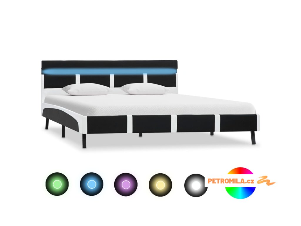 Rám postele s LED světlem černý umělá kůže 140 x 200 cm