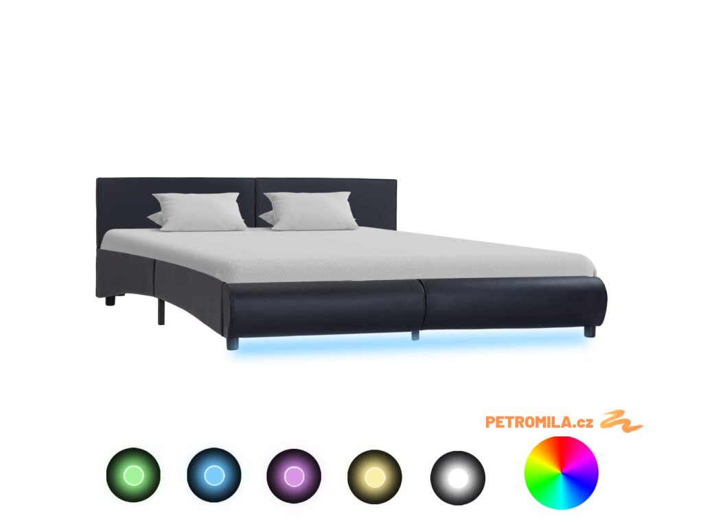 Rám postele s LED světlem černý umělá kůže 180 x 200 cm