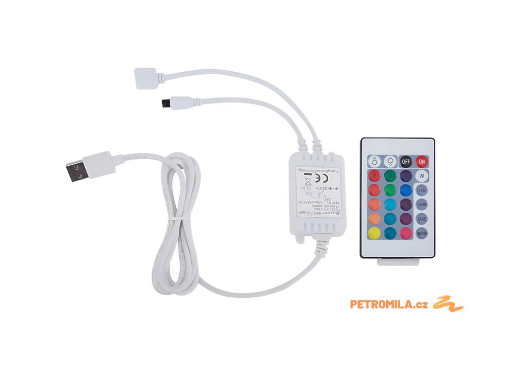 - Dálkové ovládání s 24 tlačítky pro výkon, jas a barevné režimy