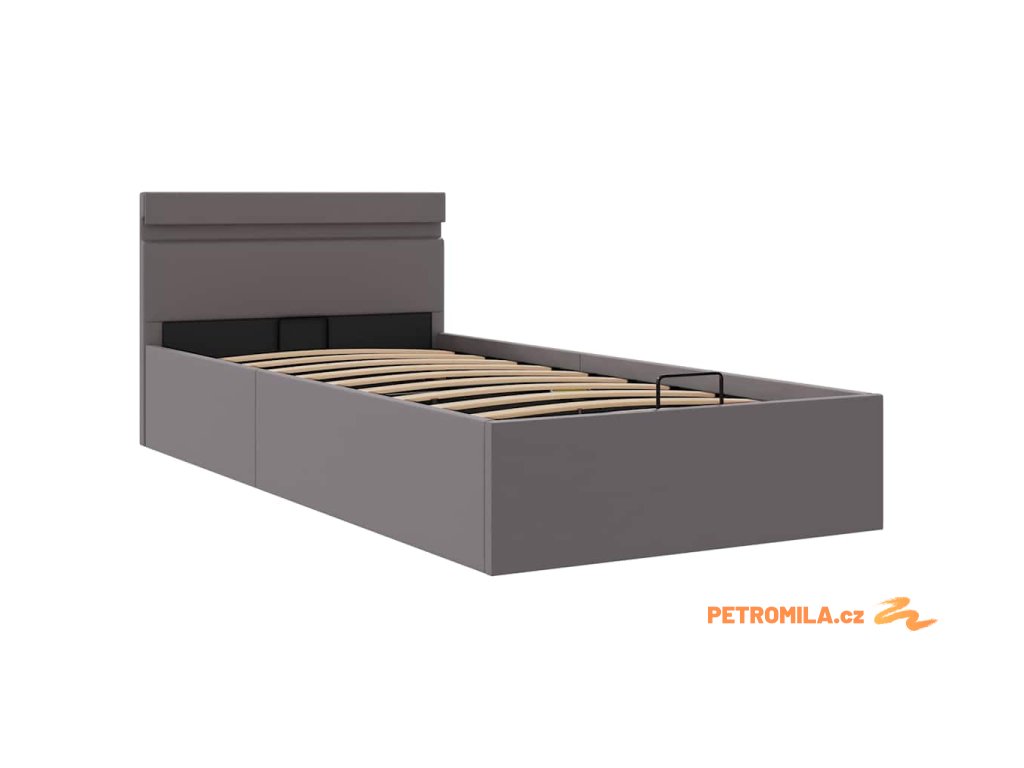 Rám postele s LED úložný prostor šedý umělá kůže 90 x 200 cm
