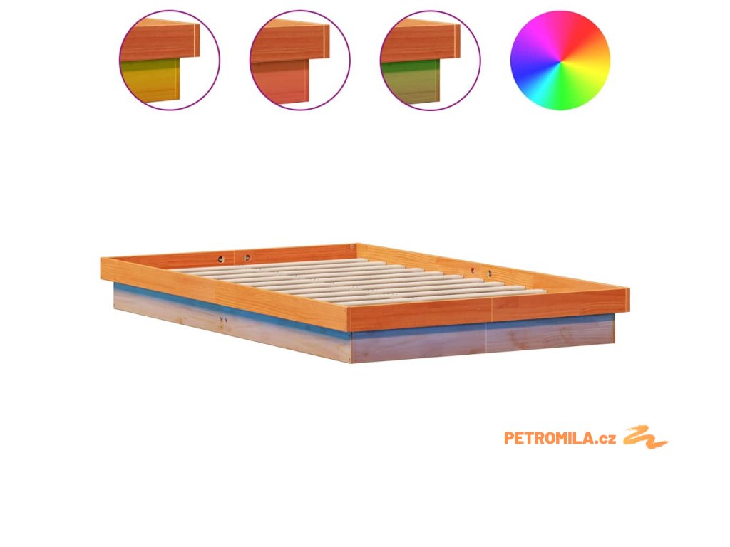 Rám postele s LED voskově hnědý 120 x 200 cm masivní borovice