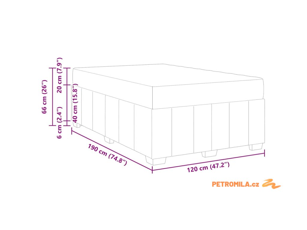 - Velikost matrace: Krátká malá dvojpostel (120 cm x 190 cm nebo 47" x 75")