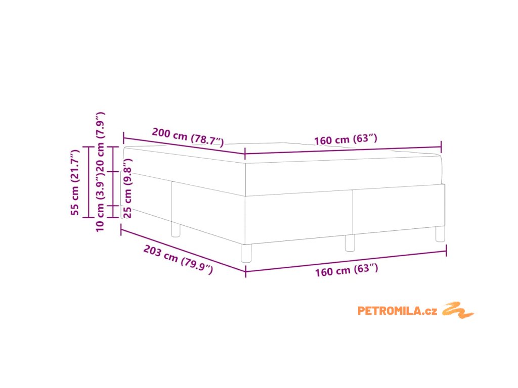 - Velikost matrace: Manželská postel king (160 cm x 200 cm nebo 63" x 79")