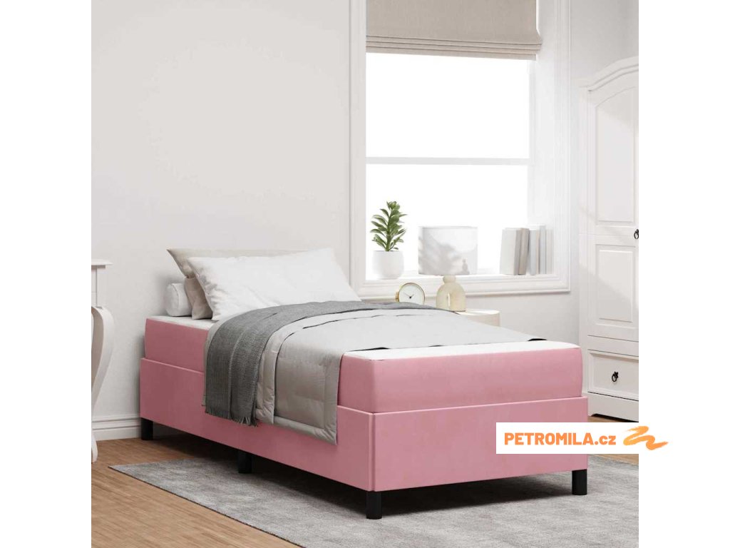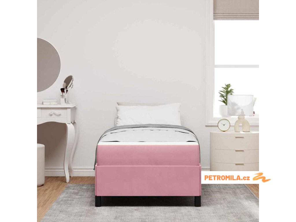 Rám postele s matrací Růžová a bílá 100 x 200 cm samet