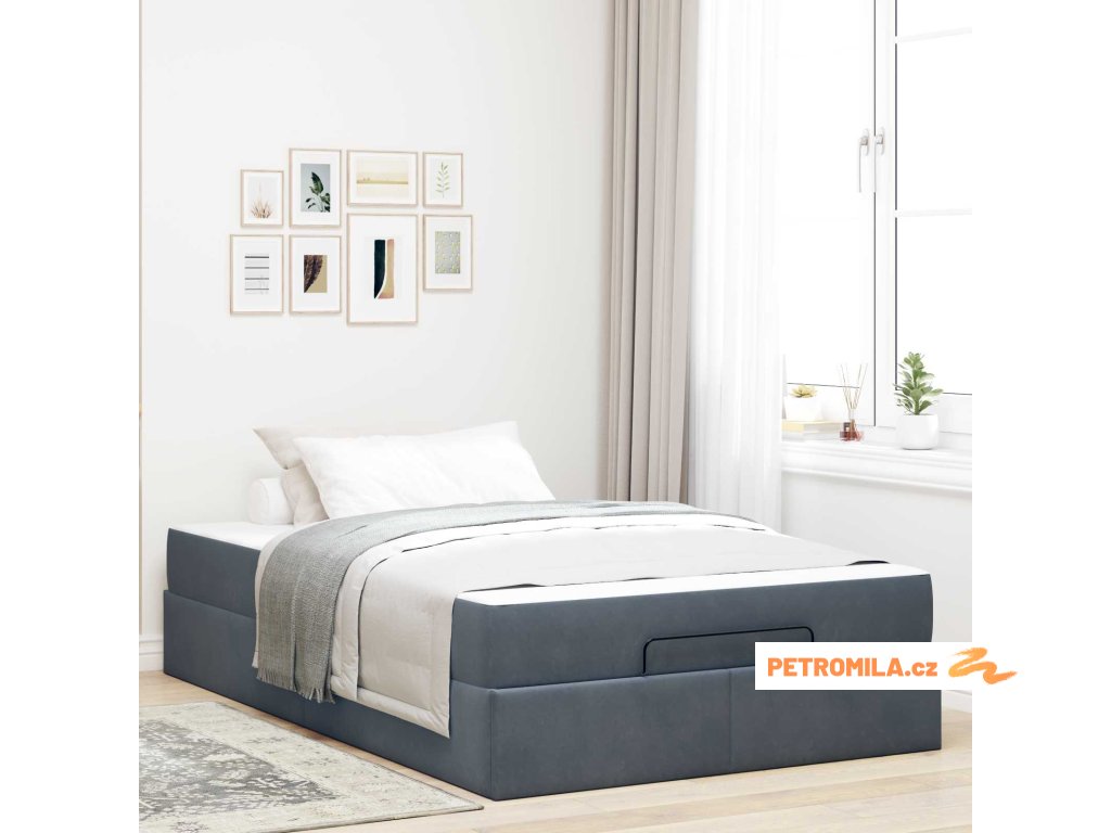 Rám postele s matrací s matrací 2 pcs Tmavě Šedá samet