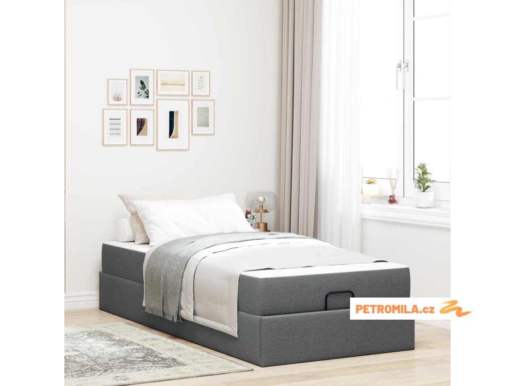 Rám postele s matrací s matrací 2 pcs Tmavě Šedá textil