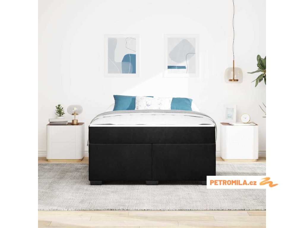 Rám postele s matrací s matrací Černá 160 x 200 cm samet