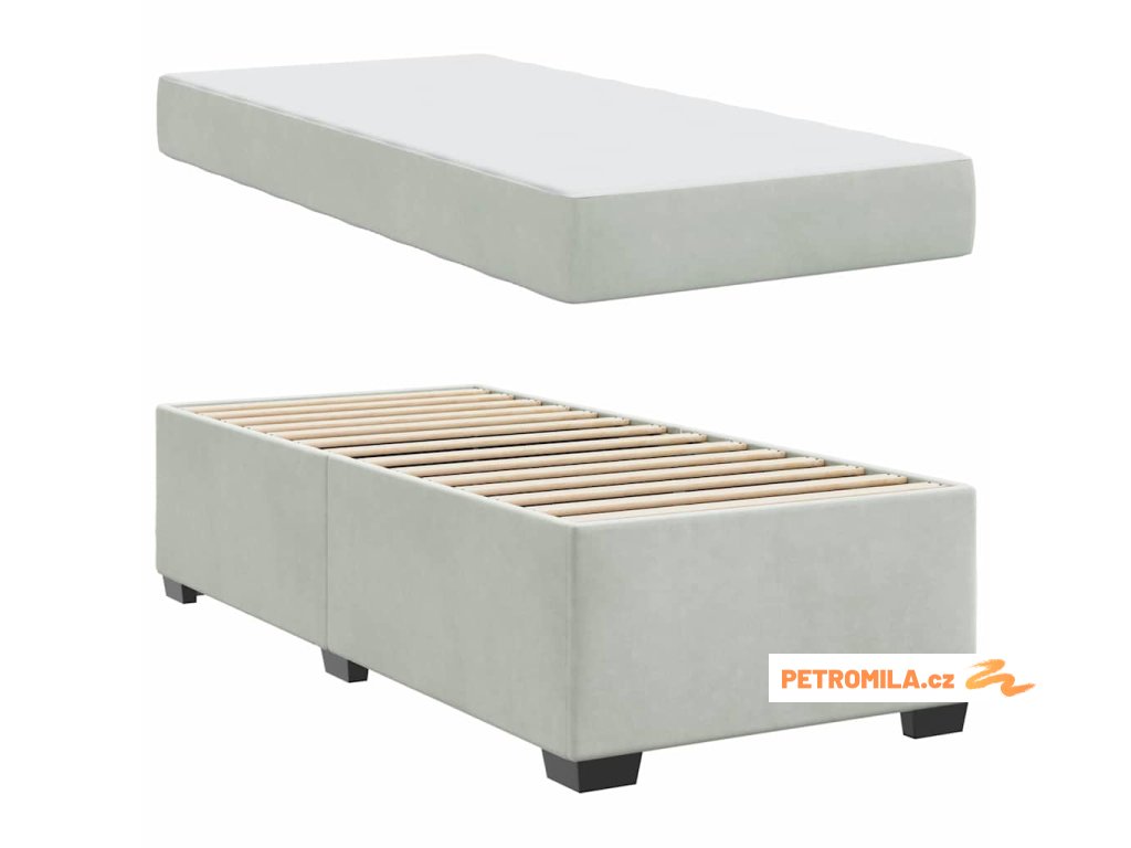 Rám postele s matrací s matrací Světle šedá 100 x 200 cm samet