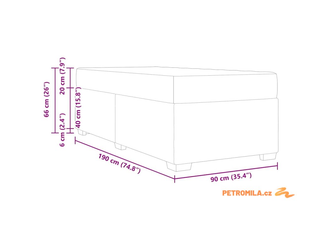 - Velikost matrace: Krátké jednolůžko (90 cm x 190 cm nebo 35" x 75")