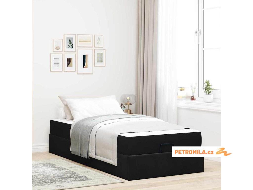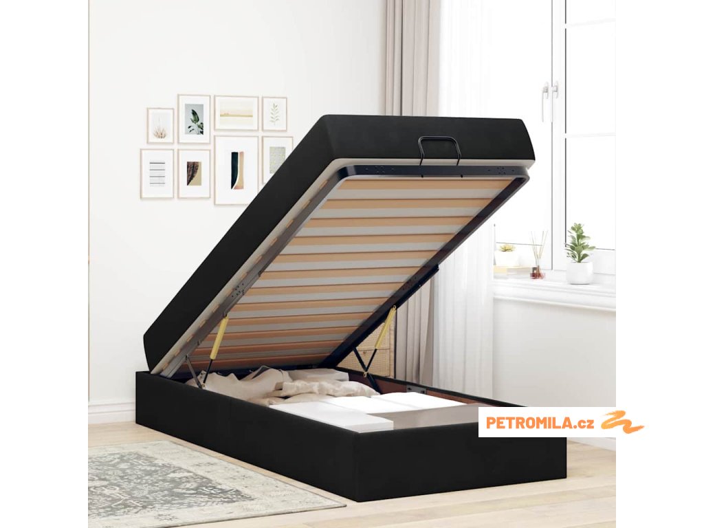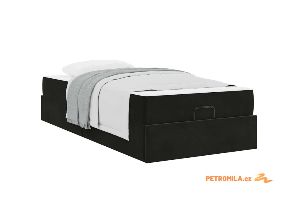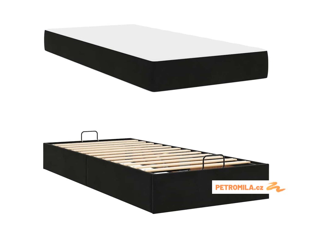 Rám postele s matrací s úložištěm Černá 90 x 200 cm samet