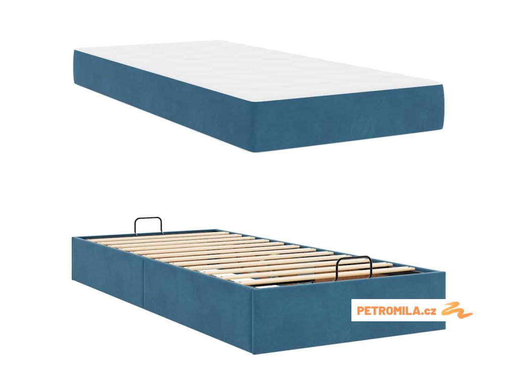 Rám postele s matrací s úložištěm Modrá 90 x 200 cm samet