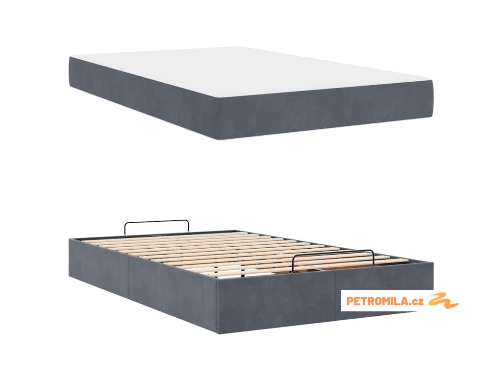 Rám postele s matrací s úložištěm Tmavě šedá 120 x 200 cm samet