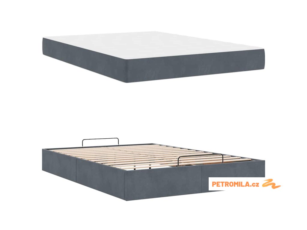 Rám postele s matrací s úložištěm Tmavě šedá 140 x 200 cm samet