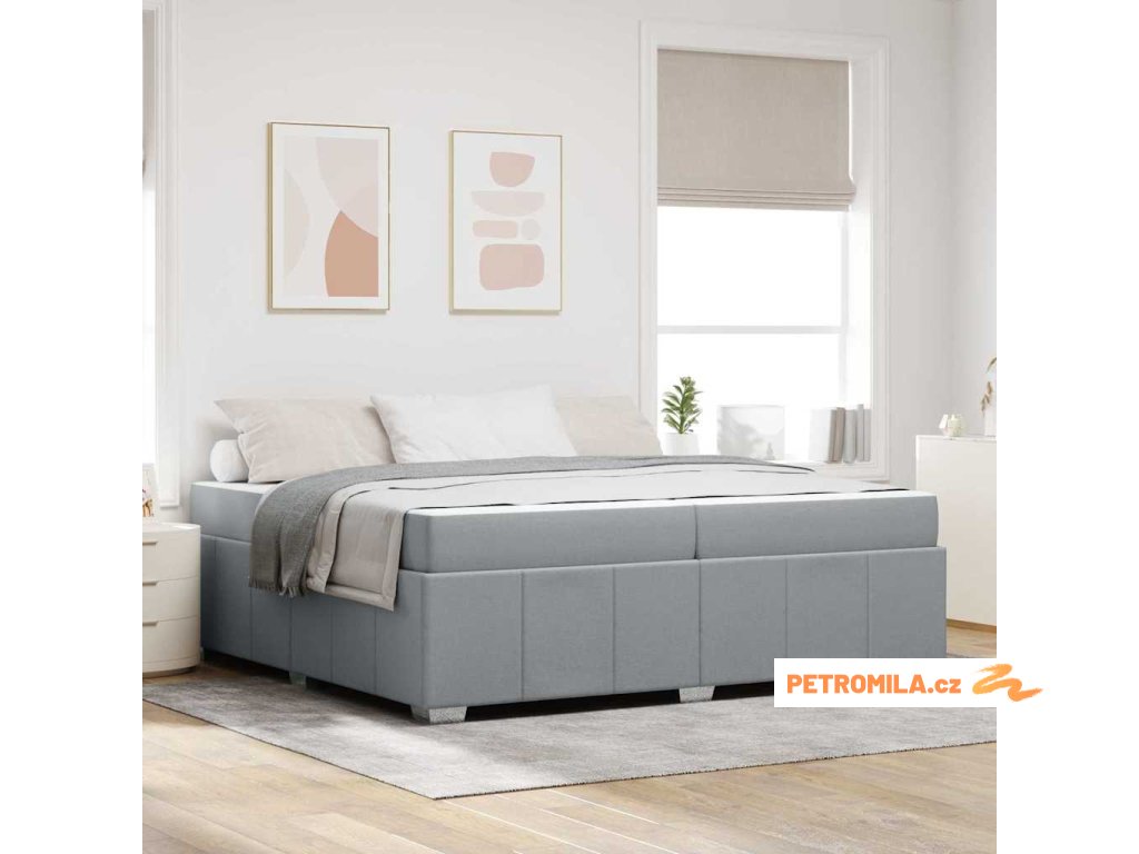 Rám postele s matrací Světle šedá 200 x 200 cm textil
