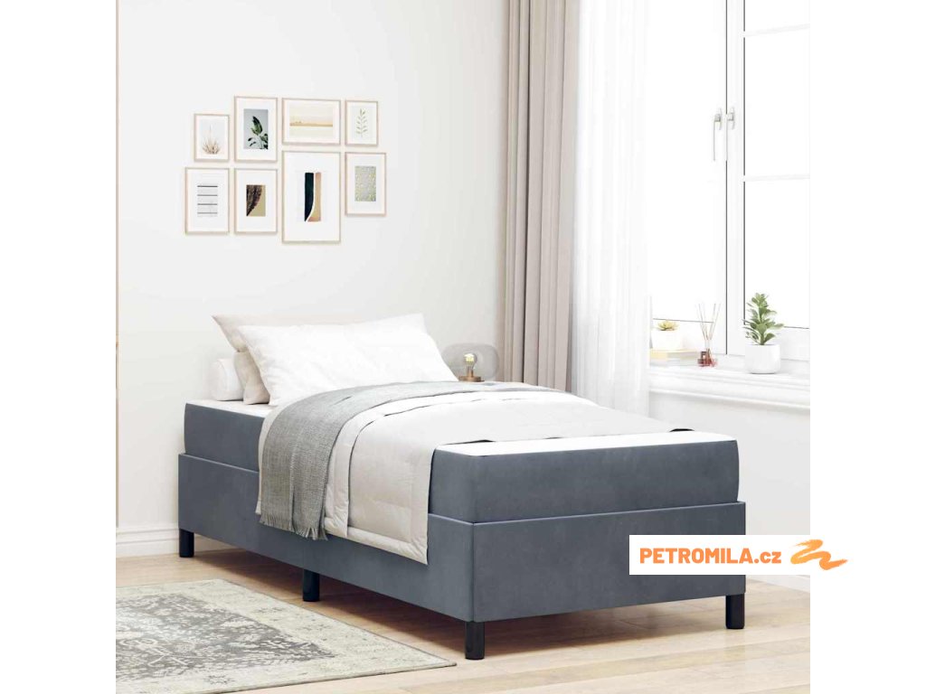 Rám postele s matrací Tmavě šedá, šedá a bílá 90 x 200 cm samet