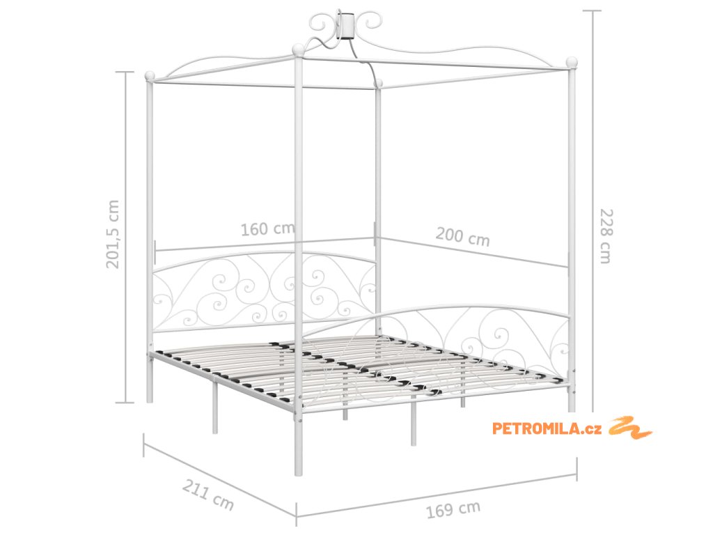 Rám postele s nebesy bílý kovový 160 x 200 cm