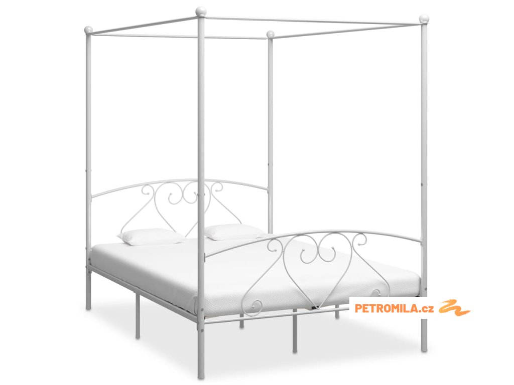 Rám postele s nebesy bílý kovový 160 x 200 cm