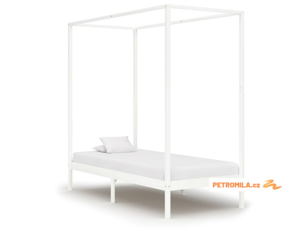 Rám postele s nebesy bílý masivní borové dřevo 90 x 200 cm