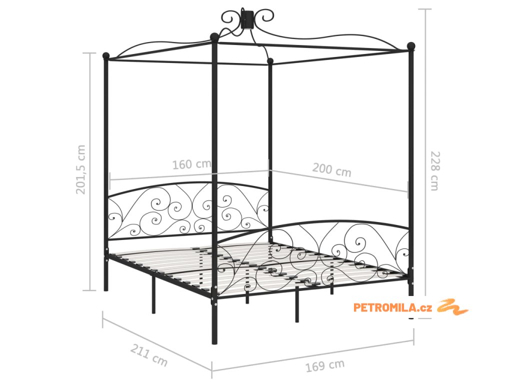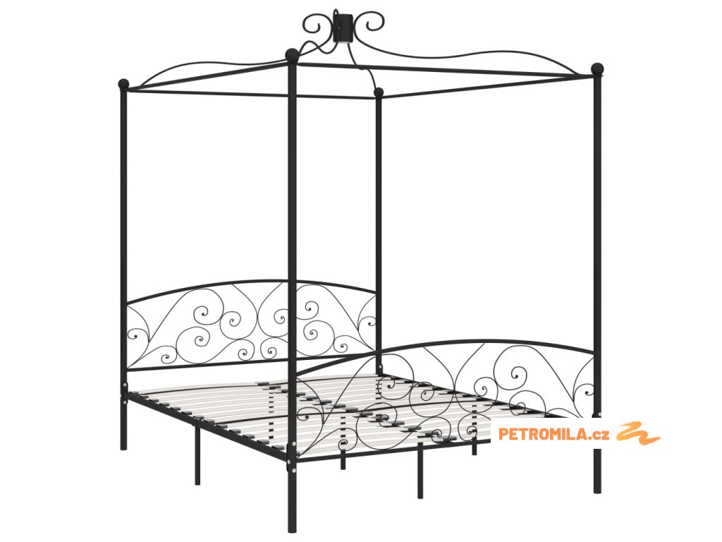 Rám postele s nebesy černý kovový 160 x 200 cm