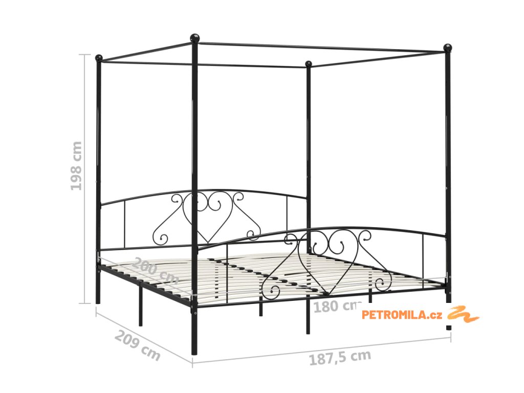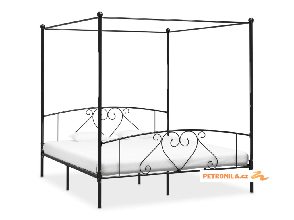 Rám postele s nebesy černý kovový 180 x 200 cm