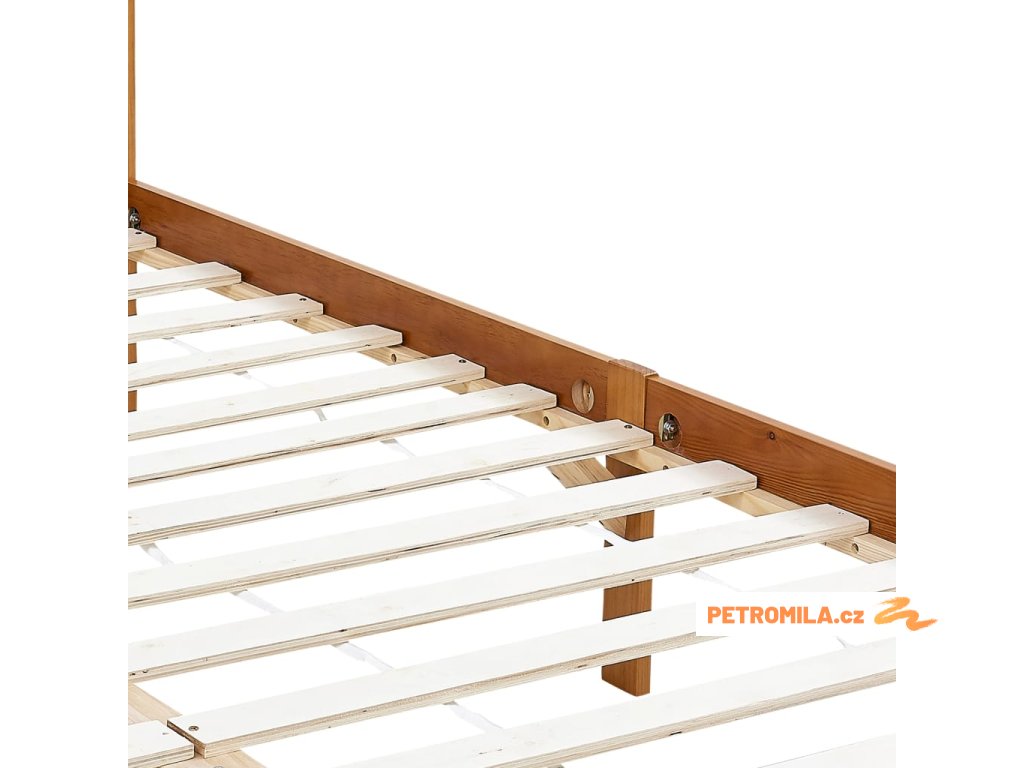 Postelový rám je navržený s důmyslným horním rámem pro pověšení vašich oblíbených závěsů, které dodají unikátní kouzlo vaší ložnici a dopřejí vám větší soukromí. Postelový rám z masivního borového dřeva se vyznačuje mimořádnou odolností a životností. Silné lamely poskytují potřebnou oporu a jsou velmi pohodlné. Tento postelový rám je vhodný pro matraci o velikosti 100 x 200 cm.