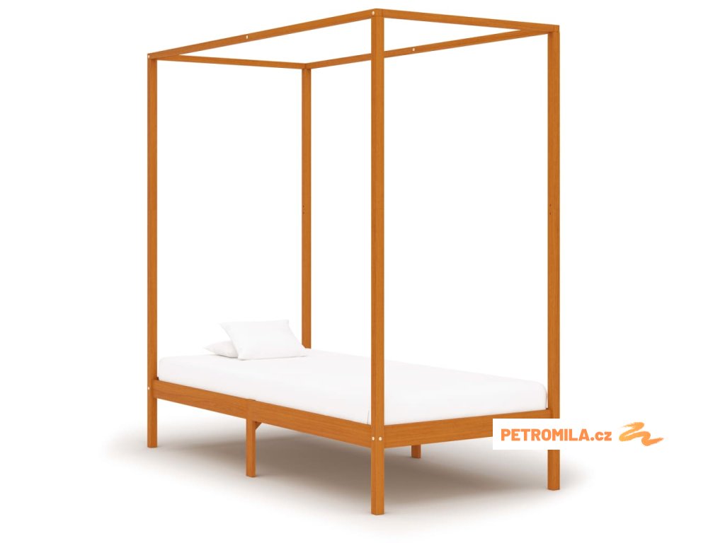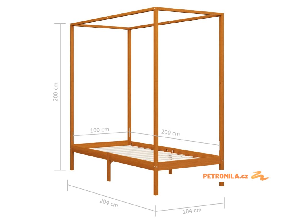 Rám postele s nebesy medově hnědý masivní borovice 100 x 200 cm
