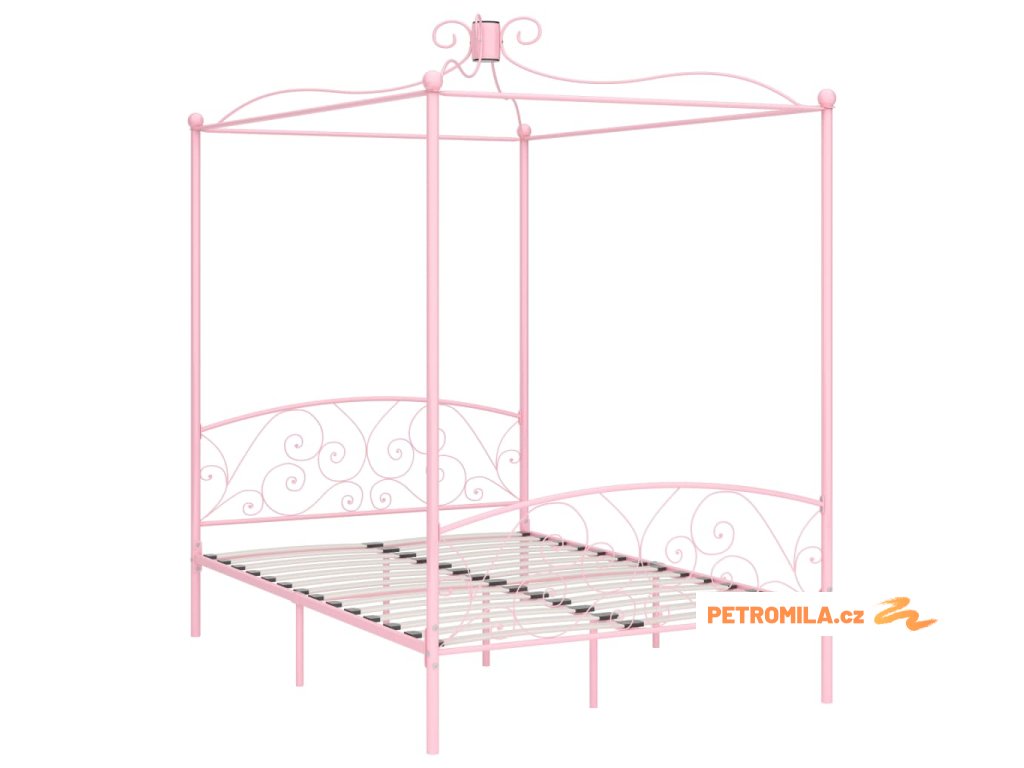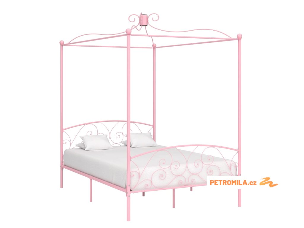 Rám postele s nebesy růžový kovový 120 x 200 cm