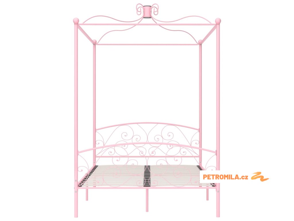 Rám postele s nebesy růžový kovový 140 x 200 cm