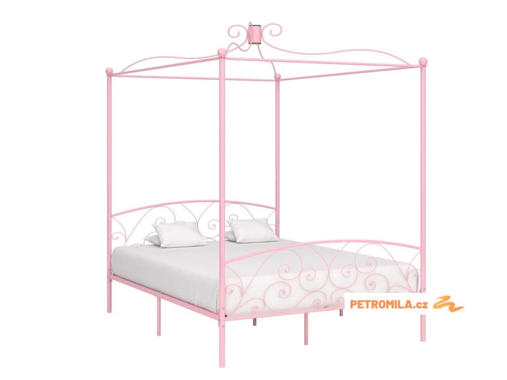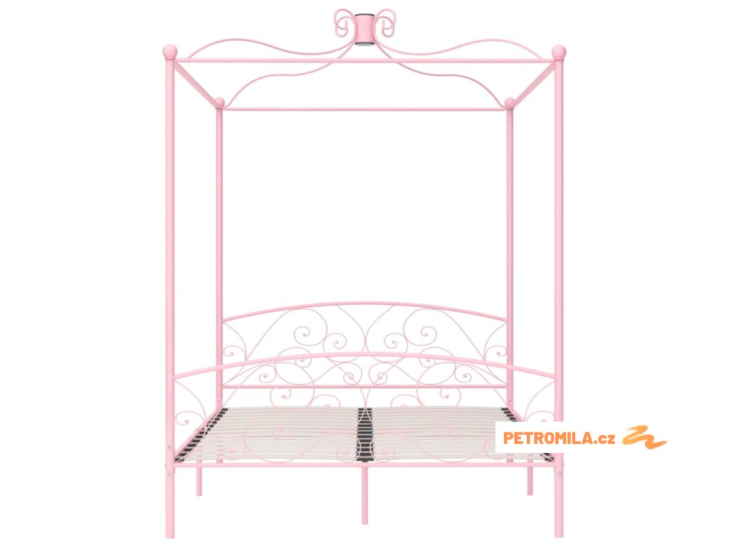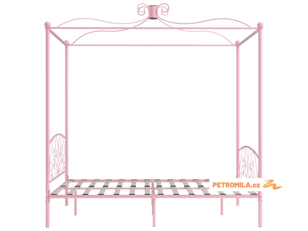 Rám postele s nebesy růžový kovový 160 x 200 cm