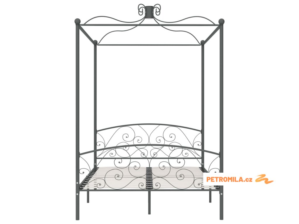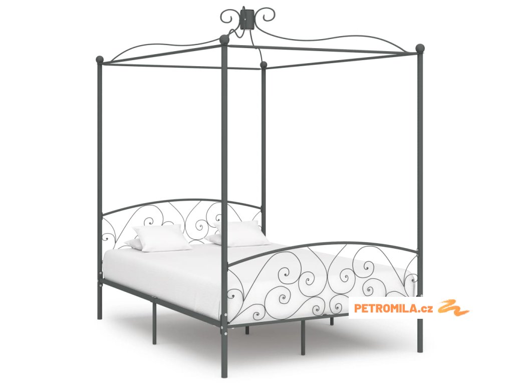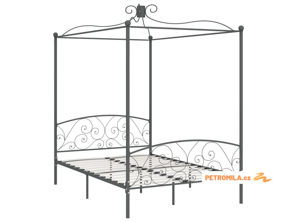 Rám postele s nebesy šedý kovový 140 x 200 cm
