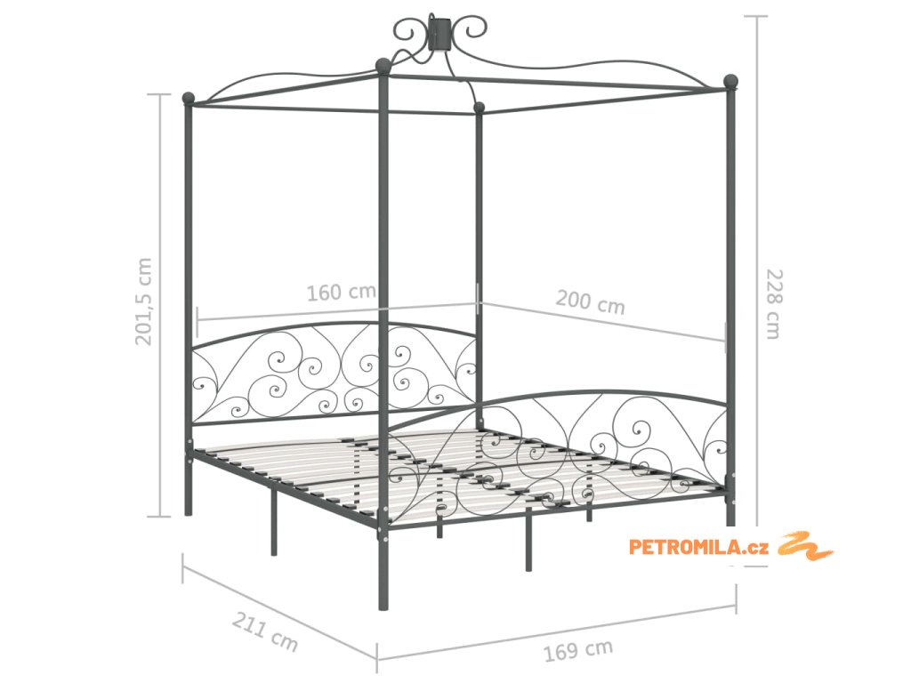 Rám postele s nebesy šedý kovový 160 x 200 cm