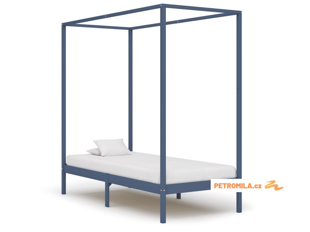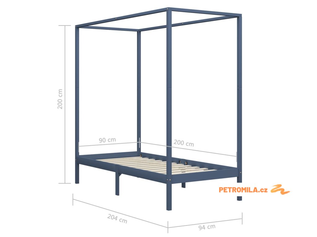 Rám postele s nebesy šedý masivní borové dřevo 90 x 200 cm