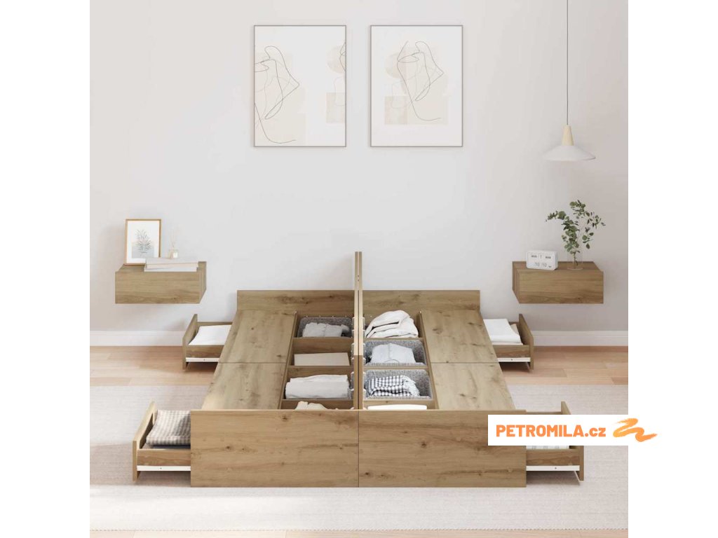 - Komplexní úložná řešení: Postel má spoustu integrovaných zásuvek, což maximalizuje místo v ložnici. Tyto úložné boxy z inženýrského dřeva vám umožní pohodlně skladovat věci jako ložní prádlo nebo oblečení a udržet místnost v pořádku.