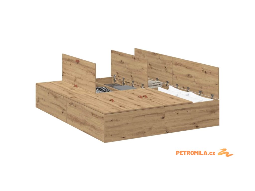 Rám postele s úložným prostorem Artisanový dub 150 x 200 cm