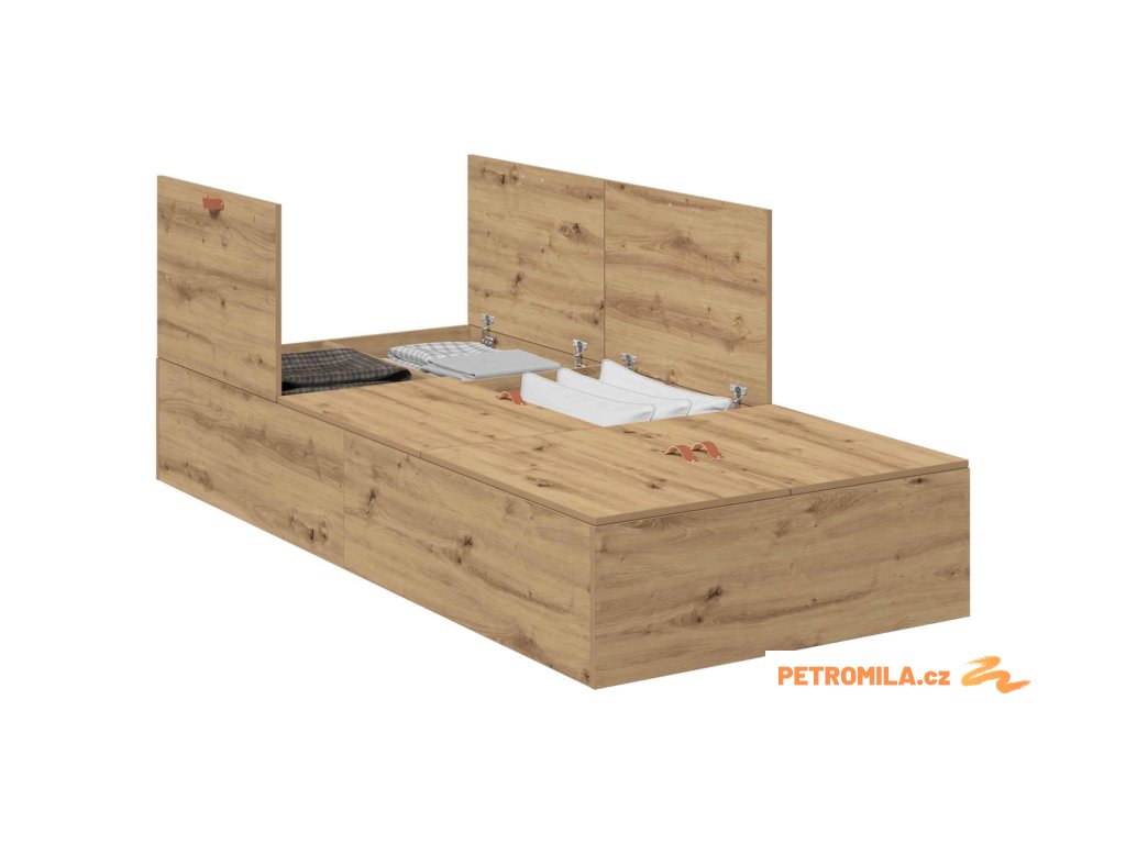 Rám postele s úložným prostorem Artisanový dub 90 x 200 cm